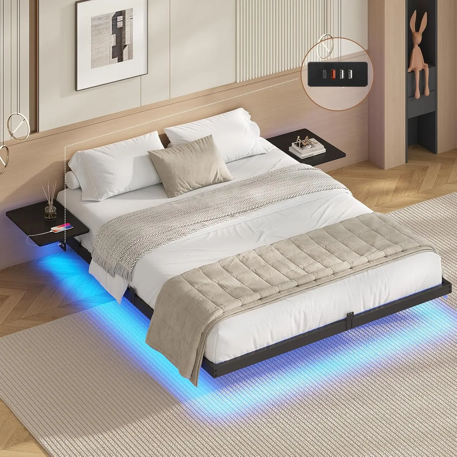 Convenient storage for books, phones, glasses, and nighttime essentials